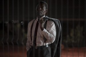 Combat de nègre et de chiens (Lotta tra un negro e i cani) è il titolo, aspro e politico, di una nota pièce che lo stesso Koltès chiese a Denis di adattare per il cinema: “dissi di sì, ma dentro di me pensavo di no, che non sarei stata in grado di farlo, che sarebbe stato troppo triste, troppo duro” (Denis in un’intervista recente). Passati più di trent’anni dalla morte dello scrittore, Denis chiama Isaach de Bankolé, grande amico di Koltès e attore in molti dei film della regista, e gli dice decisa: “facciamolo”. Da qui, da questa scelta, nasce l’eccellente Le Cri des Gardes (Il grido delle guardie), qui al Torino Film Festival, un film potente, estremo e molto attuale.