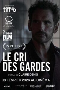 Le Cri des Gardes – Regia: Claire Denis; sceneggiatura: Andrew Litvack, Suzanne Lindon, Claire Denis dalla pièce Lotta di negro e cani di Bernard-Marie Koltès; fotografia: Eric Gautier; montaggio: Guy Lecorne; musica: Tindersticks; interpreti: Isaach de Bankolé, Matt Dillon, Mia McKenna-Bruce, Tom Blyth, Brian Begnan, Moussa Thiam; produzione: Oliver Delbosc, Gary Farkas, Clément Lepoutre, Olivier Muller, Olivier Père, Anthony Vaccarello per Arte France Cinéma, Astou Films, Curiosa Films, Goodfellas, Saint Laurent, Vixen in associazione con WILLA; origine: Francia, 2025; durata: 107 minuti.