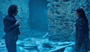 E con ciò si è detto tutto o quasi, di quanto sia d’obbligo raccontare del film di Len Wiseman che, ambientato tra New York, Praga e l’Alta Austria, per altro ha avuto una lavorazione piuttosto lunga e forse travagliata, durata più di due anni, ed è stato in parte in parte integrato con nuove scene da Chad Stahelski, qui solo nel ruolo di produttore ma autentico cervello della saga, dato che aveva diretto tutti i quattro precedenti episodi. Aggiungiamo soltanto che sul suo cammino, Ana de Armas, peraltro impeccabile nel suo impegno attoriale, incontrerà, oltre a tanti ostacoli, numerosi volti che già abbiamo conosciuto in passato: da Winston Scott manager del  New York Continental Hotel (Ian McShane), al portiere Charon (Lance Reddick, la sua ultima apparizione prima della morte), dalla già citata Anjelica Huston allo stesso killer originario, la cui presenza, un po’ da fantasma arrivato lì per caso, ad alcuni  recensori è sembrata persino troppo ingombrante e distraente (non mi pare ma sarà il pubblico a deciderlo).
