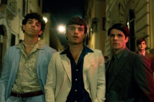Si intitola Califano, semplicemente, a testimoniare una ricerca di asciutta e lineare sostanza. Compito non facile vista la sfuggente immersività del personaggio; ma al lavoro, in questa direzione, si mette con coraggio e luminosa bravura Leo Gassmann, producendo un impasto lodevole, per certi versi inaspettato (vista la sua non esperienza in campo recitativo) di mimesi e distanza, di rievocazione sussurrata più che di netta imitazione. Cantante anche lui, però, riesce a evitare dall’inizio alla fine l’involontaria parodia o peggio ancora la sgradevole caricatura. Anzi, arriva a toccare, il sorprendente Leo Gassmann, le preziose corde dell’umano in diversi passaggi, arricchendo non poco un racconto controvento, nel tempo nostro votato alle spaziosa serialità e in certi casi – spesso musicali e in generale biografici – alle docuserie non di rado notevoli. Si veda per esempio la Raffa di Daniele Luchetti su Disney+.