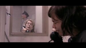 La dispersione dello sguardo in un pluralità di posizioni e prospettive sta ad indicare l’impossibilità di stare al mondo, in rapporto con esso, mantenendo quell’anelito di (sua) verità e autenticità, al costo di apparire naif e patetica. Selma è l’antesignana portatrice , come spesso accade per i personaggi femminili vontrieriani, di quel conflitto tra la tensione nei confronti di una visione e di un ascolto assoluti (dove realtà e immaginario si sovrappongono generando un immanente altrove) e la frustrazione/struggimento consumato da una visione e da un ascolto parziali: a quest’ultimo proposito è emblematica l’estenuante scena nella quale Selma si trova nella cella del carcere, in cui è stata rinchiusa in attesa di essere giustiziata, dopo la condanna a morte per l’uccisione di Jim, il suo padrone di casa , che si era impadronito dei risparmi messi da parte per l’operazione agli occhi di  Gene. La mdp di von Trier resta attaccata al corpo e al volto di Selma/Bjork, fino quasi a schiacciarla contro le pareti, e a soffocarne la voce, il tentativo di intonare una melodia che possa trasportarla, per l’ultima volta, sul set di un film di Fred Astaire e Ginger Rogers. Eppure questa apertura, concessale fino a quel momento, sembra non arrivare a manifestarsi , come se anche la mente e il cuore fossero ridotti all’angolo di un realismo punitivo, dogmatico – quel Dogma ’95 di cui Dancer in the Dark rappresenta  lo snodo critico e in qualche maniera la pietra tombale, il passaggio obbligato dalla “casa padre ” del principio inderogabile alla Dogville di una messa in scena colta nel suo farsi e disfarsi, nel fare dell’immagine il backstage di uno scoperchiato teatro di posa che si flette e riflette su stesso.