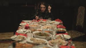 Quello che a tratti potrebbe sembrare uno sguardo quasi irridente ed ironico del cineasta, nato in provincia di Torino, ma con genitori calabro-pugliesi, verso i suoi personaggi si trasforma durante la visione nel suo contrario: lo studio dolceamaro di una solitudine, quella di Luisa, in rapporto con l’entusiasmo crescente di Imma, al quale è concessa anche una sorta di danza erotica e tribale davanti al fuoco (o forse incubo sessuofobo della livorosa cognata su di lei). E la specularità sta pure nella dimensione lavorativa: promozioni social e live di improbabili prodotti dimagranti o aspirapolveri dai lunghi cavi elettrici per Luisa ( che ne accentuano ancora di più il carattere scostante e isolato), attività di soccorso e di assistenza per Imma, che invece ne mettono in luce l’altruismo ed il calore. Lungi dal giudicare però, Matarrese le segue lungo i fili di un’esistenza che rimane intrecciata visto che nessuna delle due sembra voler abbandonare il campo di battaglia, in un procedere  che dalla parola(ccia) pronunciata con ancora più effetto nello stretto accento calabrese sottotitolato giunge al silenzio senza resa e senza vittoria di Luisa. Si arriva al dunque di una spirale di azioni/reazioni, incluse denunce sporte ai carabinieri locali che, come nella commedia dell’arte o in un film di Bunuel sono pure i commensali di una delle cene, e di circostanze non contemplate in cui la sopportazione per le totali assenze ad una tavola ancora una volta apparecchiata a festa è possibile solo grazie al fingere, al fuggire, all’ obliarsi secondo la pratica dell’ (auto) rappresentazione. (Non) vedersi attraverso il filtro di uno schermo per non vedere quello che succede guardando dentro la finestra di fronte oppure ascoltando i rumori provenienti dal piano di sopra. Se lo spessore di questo mood, soprattutto nella parte finale, alza il tiro di uno svolgimento fino a quel momento più calibrato sulla commedia di costume, il merito è anche delle due interpreti che, chissà fino a che punto recitano se stesse, si danno anima e corpo a una doppia danza da ultimo dell’anno in rispettive tristezza e gioia, spontaneità e pantomima. Come se danzassero insieme sulla stessa partitura di una celebrazione e di una cerimonia segreta con in sottofondo la colonna sonora dei fuochi d’artificio, nella presa diretta di una condivisione con altri corpi familiari e amicali, cosi come nella differita di un solitario guardarsi.