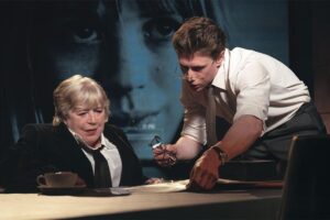 Forsyth e Pollard hanno ben pensato di organizzare e disporre rare immagini di repertorio all’interno di una complessa cornice fittizia, che a nostro parere rimane alquanto astratta e con risultati solo in parte soddisfacenti, per quanto meritevoli nelle intenzioni. Cerchiamo, ma non siamo sicuri di riuscirci, di semplificare la trama. Supposta l’esistenza, in un futuro immaginario, di un Ministero della Nondimenticanza, questo avrebbe il compito di archiviare e conservare non solo la percezione pubblica di una personalità storica, la cosiddetta ‘risonanza’ e il successo avuti, ma registrare anche la sua più vera ed intima essenza. Il Sorvegliante (Tilda Swinton) prenderebbe come esempio ideale l’icona pop Marianne Faithfull per la sua sfaccettata carriera e cercherebbe grazie a materiale d’archivio, interviste passate e attuali di riconsegnare ai posteri la ‘vera’ Marianne. L’operazione sarebbe necessaria a causa di una generale tendenza dell’Intelligenza Artificiale di lavorare su dati esistenti già falsamente ‘distorti’ da stereotipi e pregiudizi della stampa d’epoca. Nel caso dell’artista si tratterebbe della tendenza a ridurla a ‘fidanzata di Mick Jagger’ e a raccontare solo della sua vita scandalosa e il suo passato di eroinomane, dimenticando invece il reale impatto artistico della sua musica, il suo contributo alla Beat Generation, alla New Wave inglese, i suoi trenta album realizzati, e non da ultima, la sua importante carriera teatrale caratterizzata dal suo interesse per la musica di Kurt Weill e l’avanguardia musicale della Repubblica di Weimar. Un repertorio quasi senza pari! Ecco che allora, il sopra indicato Ministero, si attiverebbe per registrare una nuova e più attuale intervista con l’interessata per modificare l’impatto di dati ormai considerati obsoleti. È a questo punto che vediamo quindi Marianne Faithfull, sul viso segnato dalla malattia i tubicini per l’ossigeno al naso, conversare con l’intervistatore (George MacKay) sul suo passato. La sua figura e la sua voce calma s’interpongono fra lo spettatore e le immagini di sfondo, che sono, appunto, quelle d’archivio, cercando di dare la sua versione dei fatti. Un’altra e ulteriore chiave di lettura ci viene offerta da una tavola rotonda di alcune esperte, tutte donne, le quali discutono ed analizzano le motivazioni ed i perché sia passata più facilmente una percezione negativa e riduttiva della sua carriera. Il Ministero, a tratti caratterizzato dall’atmosfera vintage degli anni Settanta, a tratti invece più attuale, lavora in sale di registrazione fra telefoni ed apparecchi di registrazione obsoleti, ma vede anche giovani documentariste con cellulari in mano ad indicare due livelli di tempo diversi. L’idea bizzarra, e comunque coraggiosa dei due registi, rende chiara la difficoltà (e complessità) insita nello smontare e decodificare una narrazione antiquata della realtà che abbiamo ereditato dal passato, ma che ancora purtroppo, convive con la visione attuale e meno misogina della società di oggi.
