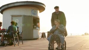 Non prevale però lo spettro della morte, se non come possibilità imminente ma solo da un punto di vista drammaturgico (ce la farà Rene a sopravvivere fino al ritorno di Bernie?); il mood è quello di una malinconia dolce, suggellato dalla forse eccessive panoramiche sulle coste inglesi come su quelle francesi, con l’insistenza sul tramonto come paesaggio di promessa in giovinezza e di stabilità in vecchiaia per Bernie e Rene, ma dove c’è una contemplazione ancora vitale, la vicinanza fisica e sensoriale che annulla lo sprofondamento nell’oblio e nella dimenticanza.