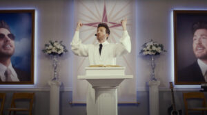 Per quanto il personaggio di Honey voglia farsi passare per una versione femminile del classico detective di genere noir, per intenderci Humphry Bogart, e sia caratterizzato dalla stessa calma di agire della poliziotta Marge in Fargo, Margaret Qualley è lontana dal consegnarci un personaggio carismatico e ambiguo come Bogart, o così originale come era riuscita a crearlo Frances McDormand. L’eleganza e i particolari dai forti colori di scarpe e vestiti della costumista Peggy Schnitzer, che Honey si porta addosso, sommati alla sua perfezione fisica – non dimentichiamo il ruolo di co-protagonista dell’attrice in The Substance – la elevano e fanno in modo che risalti sì, fra i trasandati e sciatti abitanti della piccola cittadina, ma la rendono anche poco credibile nel ruolo di una detective di provincia. E non perché non sia Qualley capace nella sua recitazione, ma perché il suo ruolo così scritto, risulta ripetitivo e non persuade nemmeno in un B-movie come questo. E non solo, anche dal punto di vista di un’interpretazione femminista Honey Don’t si lascia andare a una visione superficiale della società patriarcale americana. Vediamo quindi la sorella Heidi succube dei suoi tanti e troppi figli, la nipote vittima della violenza di genere, mentre le adepte donne della setta sono tutte sottomesse sessualmente al volere del reverendo Devlin. Peccato che il duo Coen-Cooke non si sia dato la pena di approfondire le motivazioni delle problematiche trattate, che rimangono sospese, tanto quanto l’investigazione di Honey sul delitto della cliente, che fra i tanti altri omicidi commessi nella durata del film, perde in credibilità e senso.