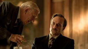 Peccato che alla morte del direttore del giornale, il figlio David (Mark Strong) decida di tagliare i costi e di disfarsi, appena possibile, di antichi collaboratori non particolarmente inclini a venire a patti con una linea editoriale che adesso vuol diventare complessivamente più morbida e moderata, anche data la violenza imperante nel paese, con individui poco raccomandabili di chiara impostazione fascista, razzista e omofoba che si aggirano per Londra. L’occasione per liberarsi anche di Erskine la fornisce la sua vita privata non esattamente impeccabile: di notte se ne va per i giardinetti a incontrare giovanotti con cui si lascia andare a sfoghi di sesso violento; per il resto convive con Tom, un segretario dalla pelle nera (Alfred Enoch) con cui, almeno in passato, intratteneva una relazione. Ecco l’occasione che cercava David per disfarsi di Jimmy. Ma il titolare del giornale ha sottovalutato le capacità, l’ambizione, la spregiudicatezza di Jimmy, che decide di non lasciare nulla di intentato pur di riconquistare il posto, il ruolo, nell’assoluta convinzione di meritarlo finché pensione, anzi morte non sopravvenga. Il critico diventa così il giudice, inappellabile, delle vicende umane. E per far ciò stringe un patto che, convenzionalmente, si definisce faustiano che, com’è ovvio, non rivelerò, ma che vede coinvolta l’attrice Nina Land (Gemma Arterton) e altri personaggi, ciò che impone una virata, nella seconda parte del film, su una modalità decisamente thriller. L’ardita transizione dal racconto articolato della scena teatrale londinese alla vicenda thriller funziona abbastanza bene, secondo me, anche se il titolo italiano esplicita un po’ troppo questa transizione.
