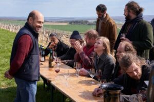 Immersi tra i vigneti della Loira, i due bizzarri protagonisti, Jacques (Bernand Campan) e Hortense ( Isabelle Carré)  due ultracinquantenni, si scoprono reciprocamente unendo le solitudini di due vite silenziose, quasi ai margini.  Jaques, burbero e chiuso in sé stesso, è proprietario di un’enoteca sull’orlo del fallimento e Hortense è un’ostetrica sola ossessionata da una mamma ipercritica che riempie il suo tempo libero cucinando piatti prelibati per i senzatetto della parrocchia. Sono entrambi disillusi e bizzarri ma pieni di sfumature:  lui, nonostante il carattere introverso, non manca di sensibilità e accetta di tenere in bottega il ragazzo affidato ai servizi sociali, scoprendo in lui un vero talento della degustazione, mentre Hortense è piegata apparentemente da una mamma autoritaria, ma è forte della sua indipendenza, con i suoi ovociti congelati in Spagna in vista di una scelta tutta sua di maternità.