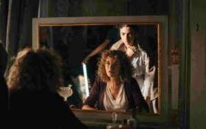 E qui si deve giocoforza aprire un capitolo a parte, perché se la Modesta di Tecla Insolia, fragile e violenta, è sempre più magnetica nella sua fremente interpretazione in tutti i sensi “senza veli”; la Principessa Gaia Brandiforti di Valeria Bruni Tedeschi è addirittura gigantesca. Assottigliando sempre di più il diaframma che separa la veridicità dalla verosimiglianza, l’attrice torinese si dona qui a noi spettatori con una generosità dimentica di ogni seppur remoto pudore, dando vita a un personaggio spaventosamente realistico e teneramente abominevole; in cui l’attrice si lascia andare senza freni, accettando di invecchiarsi e di imbruttirsi. Una performance che mette quasi a disagio per quanto è intimamente sentita, lasciando echeggiare alcuni retaggi scespiriani: sempre più prigioniera del proprio aristocratico egoismo, del proprio classismo sprezzante, che si vena persino di follia per quanto è scollato dalla realtà, e ipostatizzato in un estetismo decadente e quasi dannunziano; Valeria Bruni Tedeschi raggiunge qui vette mefistofeliche da Lady Macbeth. Non solo: a proposito di ascendenze letterarie, occorre rilevare che il suo monologo finale assomiglia per alcuni versi a quello che il Principe di Salina fa nel Gattopardo di Giuseppe Tomasi di Lampedusa: “Si aspetta la Sicilia nuova, un’Italia nuova, un uomo nuovo, tutto questo muoversi, questo affannarsi… Tutta questa vecchiezza è un’autentica rovina!” Sono le parole di una vecchia aristocratica stanca che si sta congedando dalla terra, ma anche dal mondo antico che sta scomparendo come la sua classe sociale.