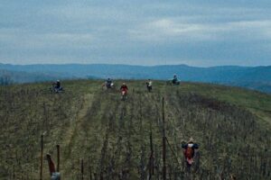 Il paesaggio del titolo, la sterminata e verdeggiante boscaglia intorno ai centri abitati e ai paesi croati e bosniaci, appare infatti statica, ancestrale, misteriosa. Letteralmente un groviglio di piante, alberi, lande da penetrare e forzare come un blocco che impedisce la transizione da un punto all’altro del pianeta. Vögele filma spesso il movimento dei gruppi multietnici che vi girano intorno come dei punti a distanza nello spazio, non specificandone la provenienza e la destinazione, Sono figure di profughi ed esuli i cui contorni sembrano sparire gradualmente in mezzo alle linee e alle forme di quelle terre che portano ancora sopra e sotto il loro suolo il peso specifico del conflitto genocida, dello sterminio indiscriminato. E tutto ciò viene visto con una limpidezza ed un rigore di sguardo che lascia attoniti: basta guardare la scena nella quale un gruppo di persone, tra le quali nuclei familiari con bambini in braccio, incappa in un prato dov’è indicata la presenza di quello che una volta era stato un campo di mine antiuomo, con la probabile esistenza di qualche dispositivo ancora funzionante. L’immagine richiama, con cosciente e inquietante ambiguità, quella di una gita domenicale in campagna, di una pratica e di un modus vivendi che è vicino, prossimo, attiguo alla zona protetta e privilegiata (fino a quando?) dell’ Europa della parte ovest. Le connotazioni figurative e le suggestioni simboliche sono però tante, diversificate, eterogenee, in rapporto alle diverse appartenenze geografiche delle genti che Vögele ha incontrato nel corso degli anni. Anche il tempo, pur non essendo indicato convenzionalmente da una data se non dalla scansione delle stagioni (dunque legato all’elemento naturale e organico), è incastonato nella presenza dello sguardo della regista, del suo essere stata sul posto, riuscendo a mantenere una distanza che non è freddezza o distacco, ma apertura ed accoglienza nei confronti di ciò che si è mostrato davanti ai suoi occhi, fino alla profonda comprensione di cosa ha osservando. Proprio stando nelle cadenzate e lente panoramiche sulle montagne boscose realizzate da Vögele ( con una definizione quasi impercettibile dello spostamento della mdp, tanto da poterne cogliere i respiri e le pause), potremmo ritornate alle riflessioni di Jean Marie Straub sull’atto del vedere che implica, appunto, un attesa, un posizionamento e uno stare nei pieni e nei vuoti di un fenomeno e della sua manifestazione.