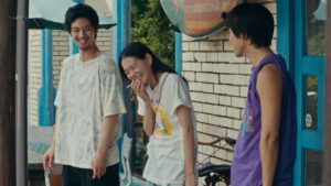 A Izu, penisola nipponica non lontana da Tokyo, e in particolare nella località di villeggiatura di Atami, nota per aver ospitato molta filmografia del grande Ozu, pensiamo soltanto a Viaggio a Tokyo e alla sequenza dei due anziani coniugi che guardano il mare, Sano e Miyata, due giovani amici che vivono nella capitale, incontrano Nagi, la ragazza dal cappello rosso cui allude la traduzione italiana del più iconico e sferzante Super Happy Forever, ritrovandosi insieme a guardare lo stesso mare.