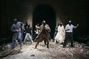 Nella regia di Michele Sinisi non c’è posto per il protagonismo dell’eroe e dell’antagonista schilleriano, non è un caso che gli attori della Compagnia della Creta siedano tutti in palcoscenico e si esibiscano presentandosi prima nella loro reale identità, come a dimostrare una sorta di compenetrazione di personaggi dei Masnadieri con le loro vite, che a loro volta inverano quelle dei giovani ribelli schilleriani.