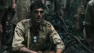 E di guerra ci parla la serie in oggetto, la Seconda guerra mondiale più precisamente, dalla Siria alla Thailandia fino ai campi di prigionia in Birmania dove troviamo il protagonista della storia, l’ufficiale medico Dorrigo Evans, interpretato da Jacob Elordi (da giovane), e da Ciarán Hinds da maturo (singolare circostanza per Elordi, cui è capitato di recente lo stesso switch: avendo interpretato il ruolo del protagonista giovane di Oh, Canada – I tradimenti, che ha i tratti maturi di Richard Gere). Evans è un ufficiale dell’esercito australiano, impegnato a combattere contro l’esercito giapponese, in uno scenario apocalittico di cui Kurzel non ci risparmia alcun orrore, dalla morte che piomba all’improvviso, disintegrando la vita ancora in erba di un suo commilitone che poco prima celiava divertito; ma nemmeno la decapitazione di un altro peraltro già annichilito dalla malaria. Tali scempi sono rappresentati senza alcun compiacimento gratuito, ma sono lì a rammentarci quanto sia folle la guerra, e stolta la “belva umana” che, ancora oggi, non è mai contenta di sangue.