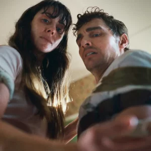 La coppia che andrà incontro a questa pagana via crucis appartiene invece alla nevrotica contemporaneità dalla quale cerca di fuggire per ristabilire una dimensione più quieta e riflessiva del loro stare insieme. Ma Tim e Millie (interpretati con un alternarsi di affiatamento e di dissonanze molto plausibile da una coppia anche nella vita, Dave Franco e Alison Brie) portano già le croci e i segni di un’asimmetria. Lei infatti è un’ insegante delle elementari con una tendenza alla stabilità e all’equilibrio, lui è bloccato nelle aspirazioni di una mai realmente avviata carriera da musicista. Lei sembra controllante su un piano pragmatico e organizzativo, lui dipendente da quello emotivo e psicologico. La crepa che può diventare voragine e scatenare gli istinti che fanno saltare quel fragile schema è già presente, mentre il pretesto è il trasferimento di Millie in una scuola fuori città, in un sobborgo confinante con il bosco setacciato e mostrato nell’incipit. Carne al fuoco è aggiunta inoltre dal trauma che Tim si trascina nella propria memoria ottica fino a manifestarla sotto le coperte del proprio talamo (non nuziale vista l’indecisione di fronte alla plateale proposta di matrimonio di Millie, in una scena che ribalta qualsiasi cliché da commedia romantica), ovvero il ritrovamento da parte sua di entrambi i genitori morti nel loro letto. I presupposti sono dunque quelli di una lontananza fisica e sentimentale che vorrebbe essere recuperata seppur con qualche titubanza; il paradosso, che rende Together anche un film macabramente divertente, è il come.