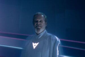 Alternando il controcampo della soggettiva di Ares e degli altri programmi è ancora più evidente il bug che ne mette in crisi il modello e ne produce il malfunzionamento, quantomeno secondo il diktat che li vorrebbe fedeli al proprio creatore. Ma forse, più che la morale ovvia, e comunque condivisibile, di non sottovalutare le derive dell’AI in procinto di strabordare dai confini dei nostri schermi, tastiere, mouse e joypad per prendere possesso della realtà concreta e non solo riprodurne il simulacro astratto, quello che convince maggiormente in Tron: Ares è proprio la confezione smagliante eppure raffreddata, divertente però concettuale, a cominciare dalla martellante e strepitosa colonna sonora post-post rock dei Nine Inch Nails. Gli stessi interpreti, pur bravi attori che hanno offerto performance vibranti e sottili (Jared Leto, Greta Lee, Evan Peters), si assestano su una cifra piuttosto monocorde da cliché di genere, che potrebbe essere però anche una risposta alla riproduzione artefatta e overacting di attori e attrici costruiti sempre dall’intelligenza artificiale (secondo una preoccupante modalità massicciamente diffusa sui social network ). Al contrario, dunque, il limite dell’espressività di un volto in carne e ossa ancora e concretizza scene d’azione che vogliono proprio invertire il flusso. Significativa la lunga sequenza in cui Eve, per dare il tempo alla sua equipe di lavoro di trovare una soluzione agli attacchi dell’esercito digitale di Dillinger, crea un elemento di distrazione nei confronti nella determinata e terribile Athena (prima partener e poi nemesi di Ares); e lo fa semplicemente correndo con il proprio corpo, il proprio affanno, la fatica, le esitazioni, le ferite. È lei a portare l’implacabile e ineluttabile funzionalità del programma nel terreno friabile e distruttibile della materia, affidandosi alle capacità dell’ingegno e allo spiazzamento delle sensazioni. Mentre sarà proprio Ares, una volta divenuto “umano”, a spezzare la ripetizione di tante vite a tempo contra la differenza di una sola vita scadenza. Fuori da qualsiasi dimensione, resta poi il dubbio sull’apparizione di Jeff Bridges che, dopo essere apparso ringiovanito agli anni ’80 nel precedente Tron Legacy, ritorna nelle sembianze sempre più profetiche di Flynn. Un volto che, in questi anni, potrebbe essere diventato il riflesso di una manipolazione algoritmica o semplicemente l’espressione autentica della sua età, il segno fantasmatico e tangibile di come siamo e di come eravamo.